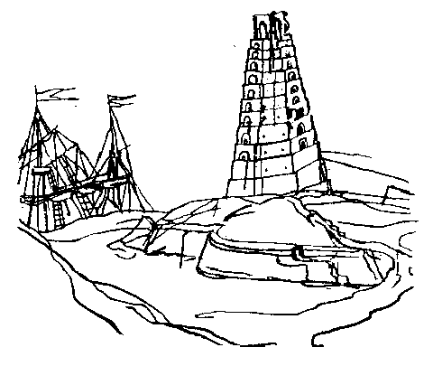 Détail d'une vue perspective intitulé «La ville de Boulogne-sur-mer 1611» dessinée par Joachim Duvient. Cette tour de 12 étages, appelée aussi phare de Caligula, mesurait 65 mètres de haut. Construite au premier siècle de notre ère, elle s'écroula en 1644.